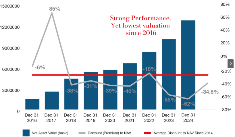The gap to NAV shown in that picture closed, NAV (as of March 25) equals market cap today. CEO (owns 19% through another investment company) and Chair have operational experience in mining. Pass for me, but an interesting way of exposure to the mining industry.