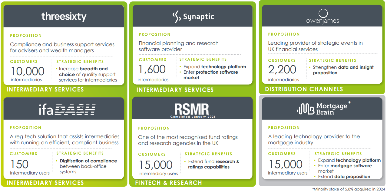 232£m provider of compliance and regulatory support for intermediary businesses such as wealth managers or mortgage brokers and distribution services for banks or pension companies. Recent TU shows 18% revenue growth, mostly inorganic. 57% of revenues is recurring. Founder owns 24% and is non-executive director. CEO joined in the founding year 2002 and joined the board in 2010, owns 4%.