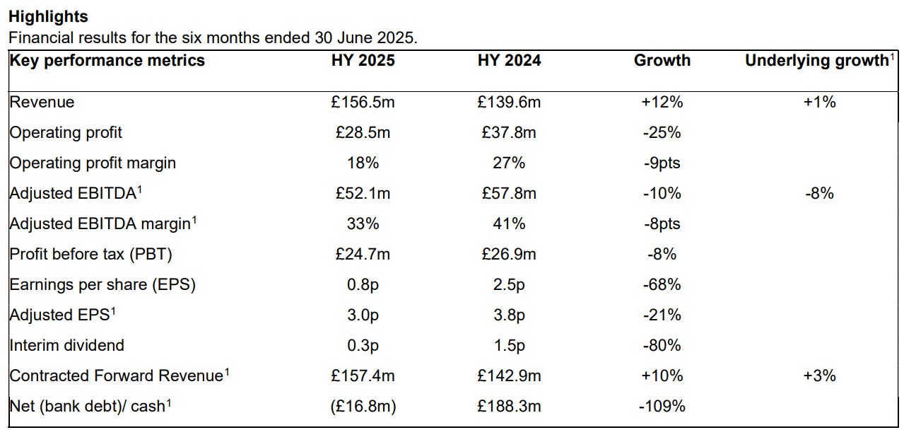 29£m provider of productivity software for professional and financial services. Latest TU shows 6% growth in ARR to 21,3£m. Adj. EBITDA reduced in last two years, but 2024 was the first profitable year on adj. profits base. Nearly 100% recurring revenue. Number of customers down 10% since peak in 2021. Is working on reducing churn rates and expects acclerated ARR growth in 2026 due to a partnership with Intuit and new ‘AI-driven workflows’. Not sure what’s exactly the pitch here, I didn’t read anything about increased profitability e.g. Pass.