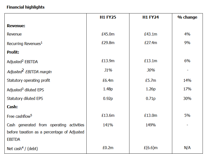 Highlights good revenue visibility for H2 and 2026. Some share issues in the past, I assume for M&A. Small dividend. No insider ownerhsip, various asset managers own >60% of shares. CEO joined in 2018 from Nortgate Public Services, so he knows how handle public spending cycles I assume. Chairman also joined in 2018 from the same company. Seems like a slow grower with increasing margins and M&A experience. Watchlist.