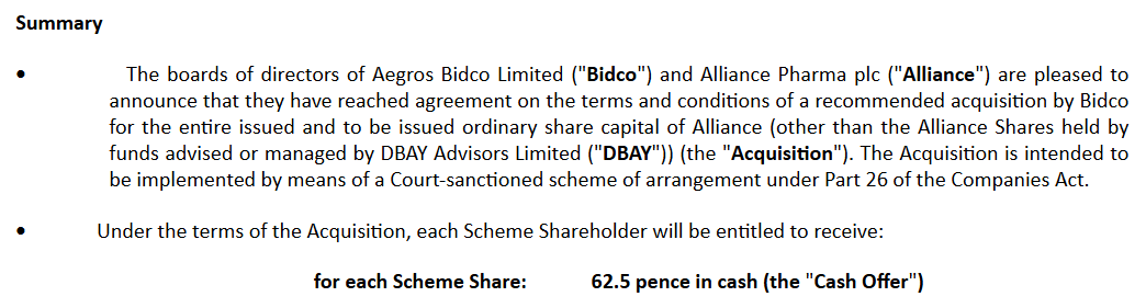 The offer has been increased to 64,75 pence. Today the shares trade at 64,4 pence. As the spread is so small, it seems the market is expecting this deal to go through. Pass.