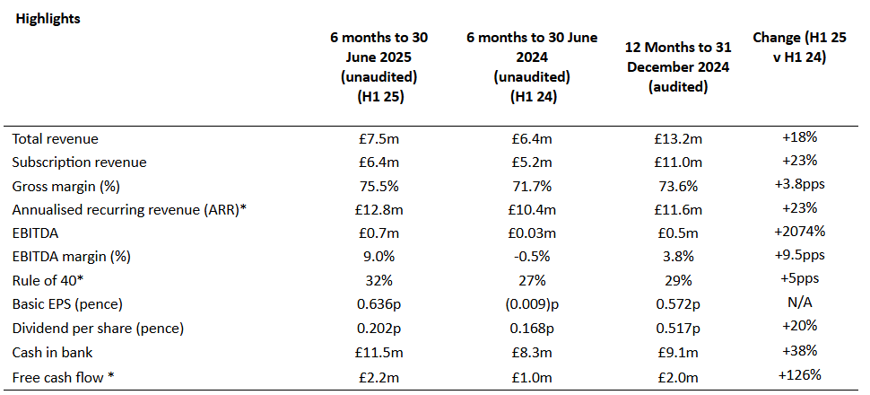64£m SaaS business offering tools for learning content, activity tracking, compliance: ‘Building ethical and resilient workplaces’. Latest H1 results looking solid: