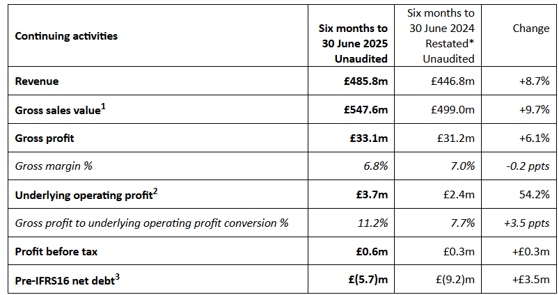 56£m staffing group. 7,5£m buyback ongoing, repurchased ~30% in recent years. Cash stacked up on the balance sheet since the financial crises, so apparently there was a change in capital allocation policy. H1 2025 results looking good: