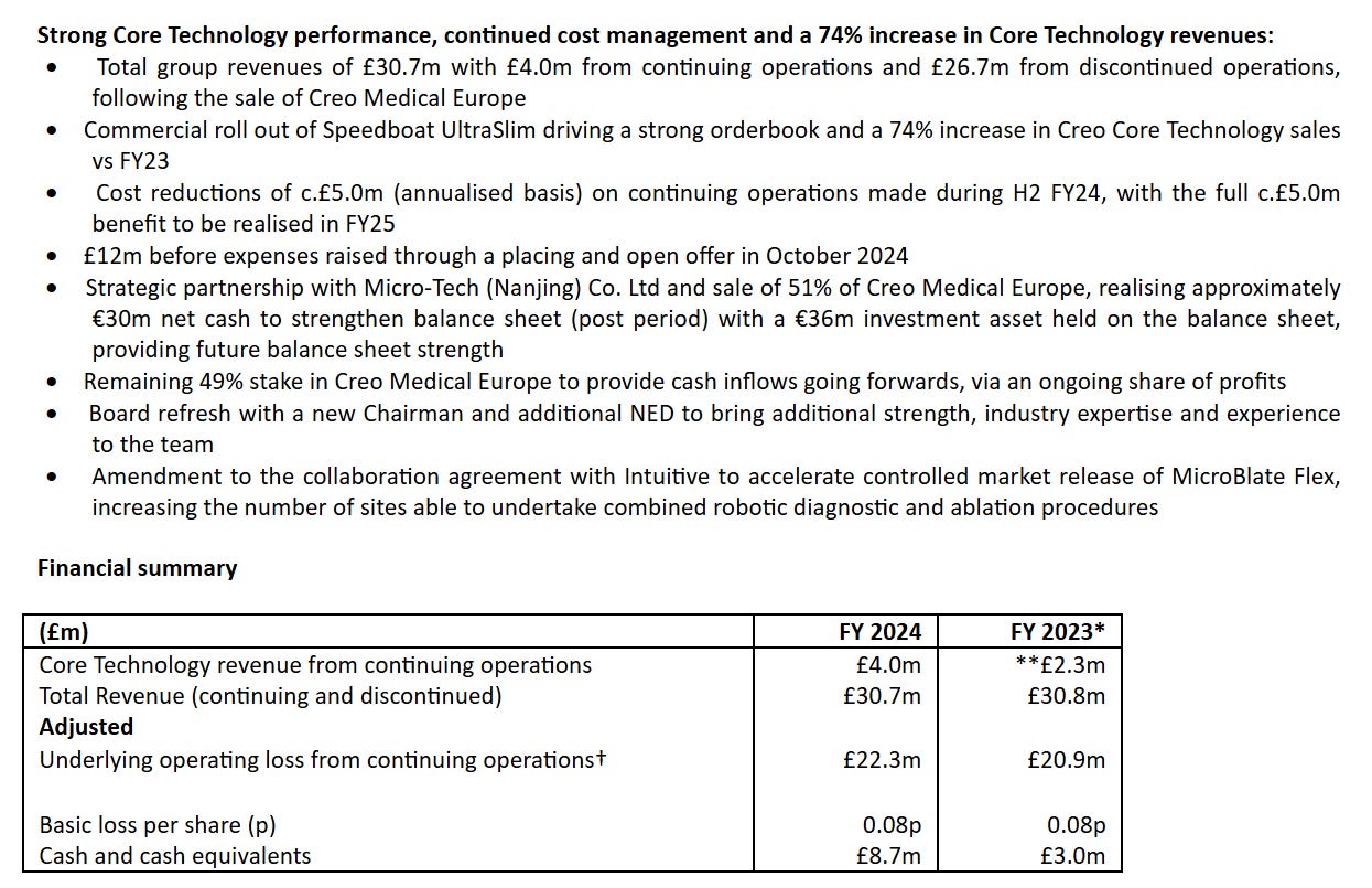 61£m medical device company focused on minimally invasive electrosurgical devices. Sold 51% of its european business for 30£m. A lot going on: