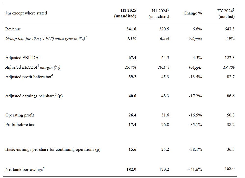 Profits down due to increased D&A and costs associated with the investigation. Profit before tax further down because of higher interest payments. Management joined in 2018/2019. Numbers are adj. for costs of business combinations which I would not consider costs you should adjust for here as M&A is an important part of their strategy. Adj. PBT would be about 55£m then. So it’s definitely >20x P/E. Watchlist to see how this plays out. Write-ups from @