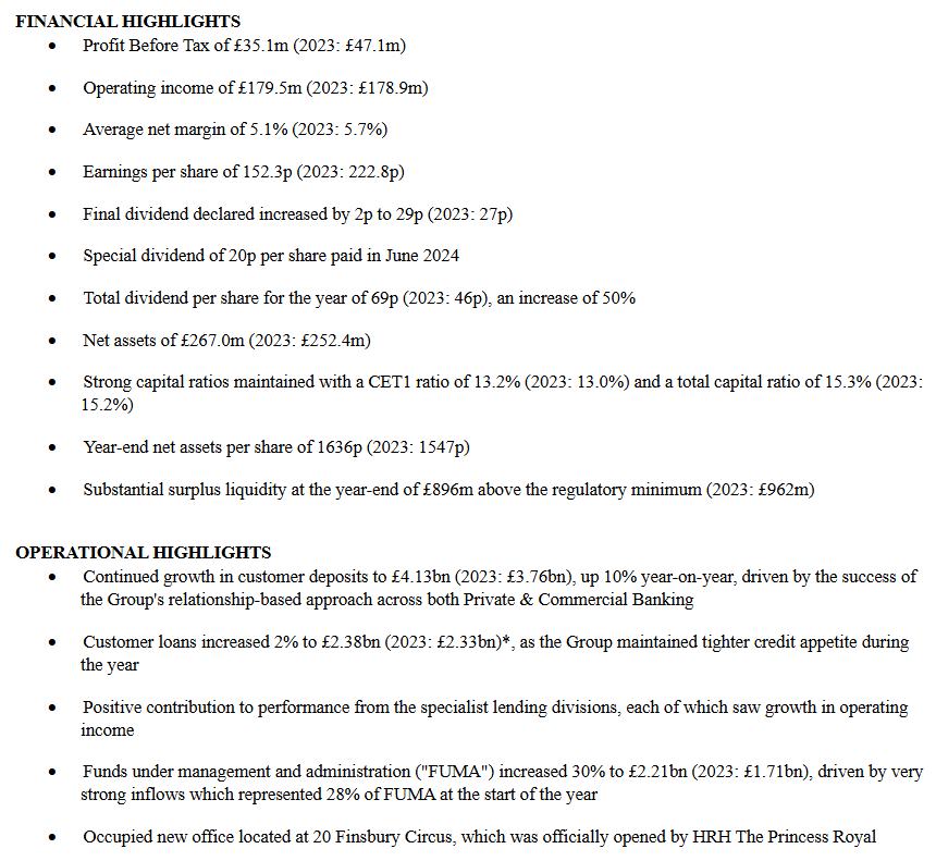 Also announced a 10£m investment in iO Partners, a finanical services provider within the alternative financing market (whatever that exactly means). Only looking for minority investments.