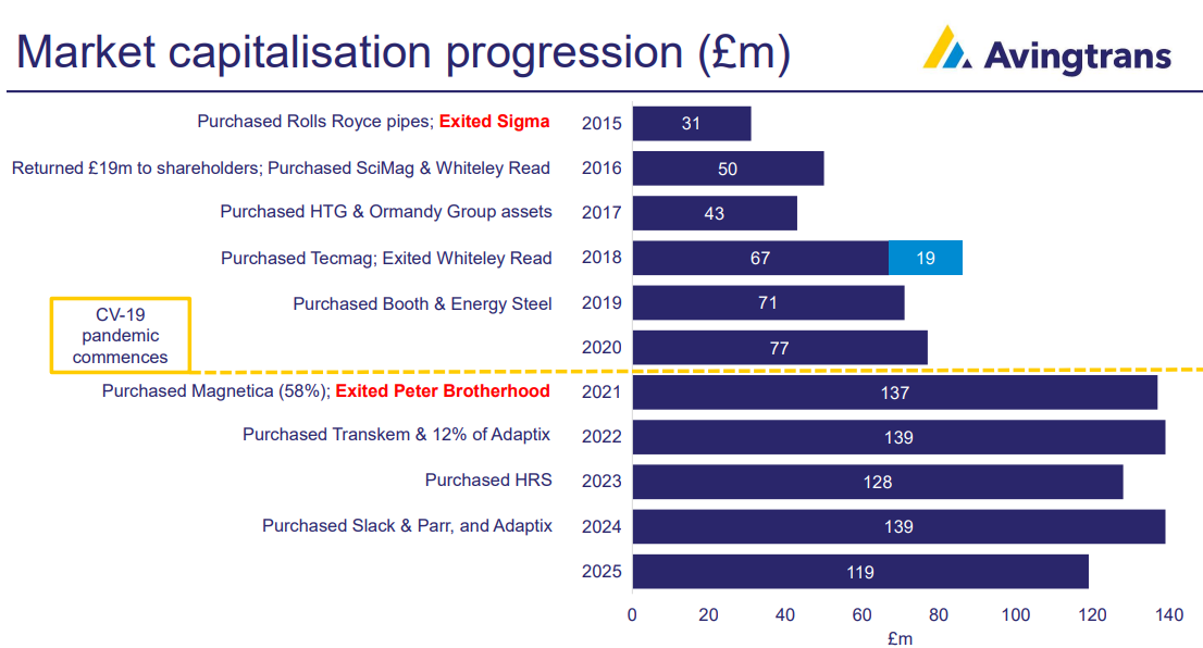 ‘Avingtrans has a proven strategy of “buy and build” in highly regulated engineering markets’. 119£m market cap. Some sort of PE/serial acquirer mix as they buy, improve, sell companies.